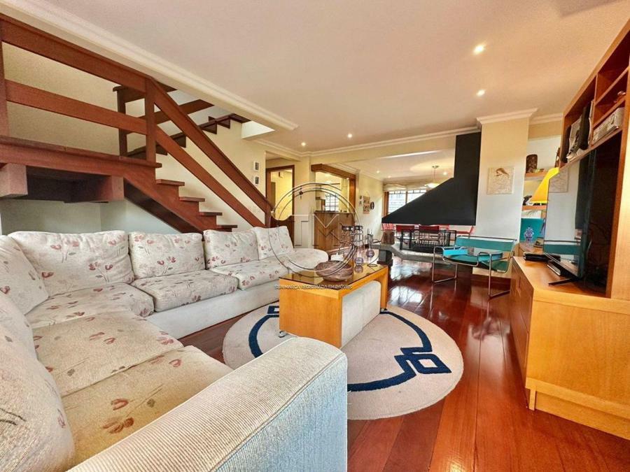 Belíssimo apartamento cobertura com 3 dormitórios (1 suíte com closet), lavabo, living 2 ambientes com lareira, cozinha com churrasqueira, área de serviço, calefação e água quente instaladas, semimobliado, 1 vaga de garagem.